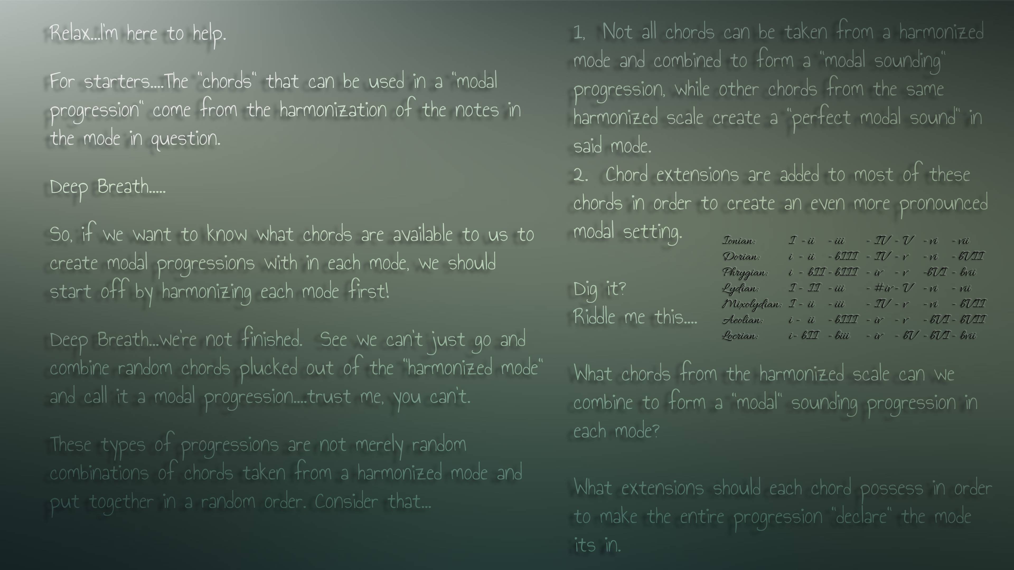 "If we merely study our melodies played over short progressions just to get to know the sound of each mode...we will never truly discover, or ever understand how the vamps were formed."